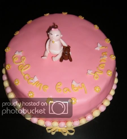 Поради обратите в правилата на тортеното предизвикателство се оказа, че няма да ми трябва бебешката торта за предизвикателството, затова мога да я изпльоскам тук. Правих я в края на юли, искаха я да е изчистена, така че няма кой знае какво по нея...