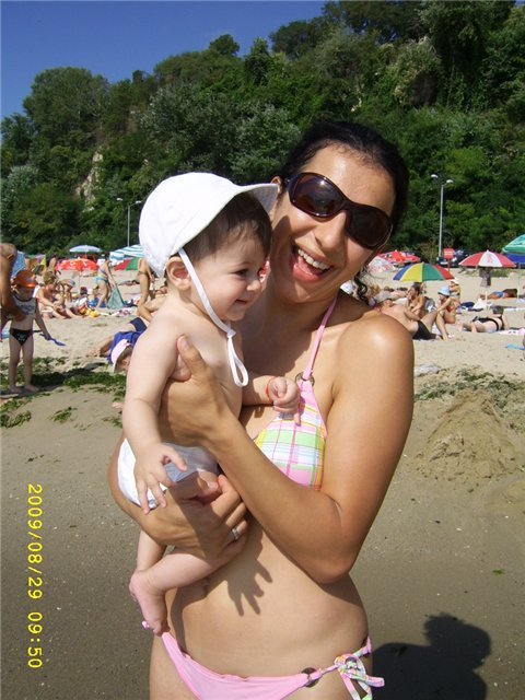 Полина гледа морето с голям интерес, но като рекох да й потопя крачетата, точно тогава плисна голяма вълна и тя се стресна. Беше много сладка