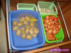 аз обикновено държа в наличност поне няколко вида зеленчуци и плодове и също размишлявам къде да ги прибирам. не може всичко в чекмеджето на хладилника - няма толкова място...