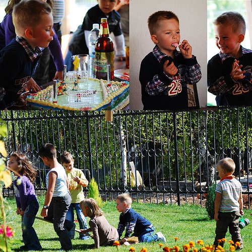 Рожденията ден мина...емоционално и тържествено. Имаше много игри от зори до късния следобед /времето беше страхотно и децата дивяха на поляната/ вечерта бяхме с бабите, дядото и вуйчото с вуйната...въобще беше хубаво. Слави от сутринта 8,30ч. заспа чак в 22,30ч. вечерта каталясъл но пълен с емоции и прекрасни преживявания. Цяла нощ не мръдна и сутринта го заварихме в същото положение в което вечерта баща му го сложи в кошарата Mr. Green