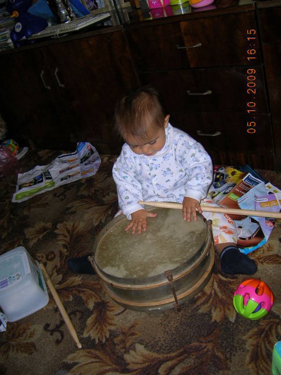 АЗ досега съм гледала само вариант, майката постила една бяла покривка пред детето и по нея търкулва питката. На другия край на покривката на масичка бяха подредили предметите. То беше голямо препипване, гризане, пускане  Mr. Green