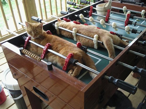 Ние го играем "Четирима в едно легло, без да споменаваме заека" и сме щастливи. Имам си детенце, имам си котки - к'во му трябва на човек! Една бира, може би?