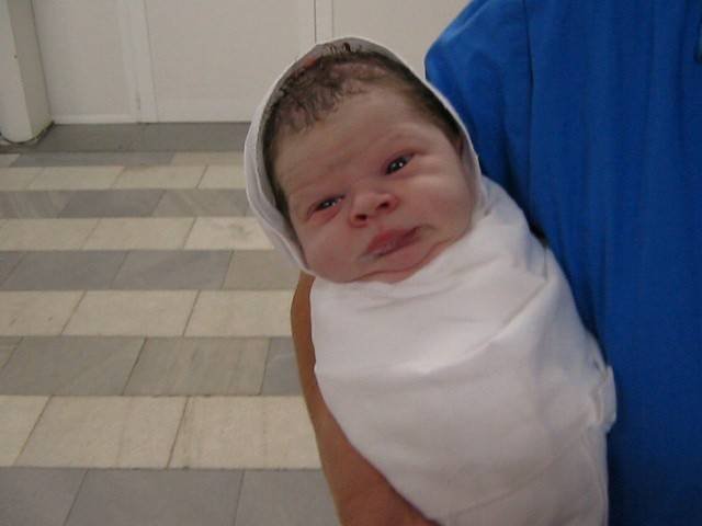 Ето и снимки преди/след.Тук е точно след раждането когато го извеждат от родилното и са го показали на таткото