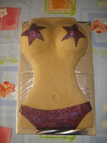 от много отдавна не съм ви навестявала, ама от работа дете и пътувания .... така е, не ми остава време даже да ви чета. Но поне намерих малко време да спретна една тортичка за зетя ( newsm78, брата на мъж ми?) .... Та при покритието си имах баж бая пречки и спънки и както каза мъжо "Пластичния хирург е бил без лицензия и много малко опит и се е по изложил малко!!!"  Laughing. Но няма нищо, аз не се предавам. Та ето я и моята "стриптизьорка" (звездичките и бикините са брокатени - бордо и лилаво)