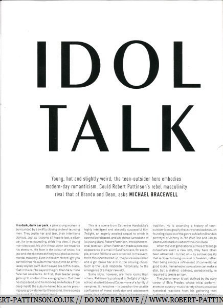 Bewley каза, че е трудно да каже дали вниманието, което Патинсън получава е направило трудно за журито на Брит да се наслади на успеха му, но че той не може да си представи, че някога може да каже, че си е пожелал да не беше се случвало. Нелепо е и може да се случи на всеки. Той се превърна от „нула“ до „герой“ за шест месеца и неговия свят се обърна тотално надолу с главата. Не знам. Наистина не съм разговарял толкова задълбочено с него за това. Но ако аз съм в същата ситуация смятам, че просто ще се забавлявам на тази част от живота така, както той не го прави в момента”