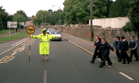 А, и при нас ги има тези на улицата, но само един възрастен, назначен от общината, с униформа и с голям знак стоп. Наближим ли да пресичаме спира всички коли. Казват им лоли поп лейди.