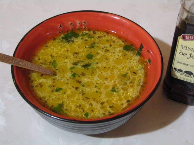 Японска супа - рамен,  днес е пилешки с малко мисо и скариди :