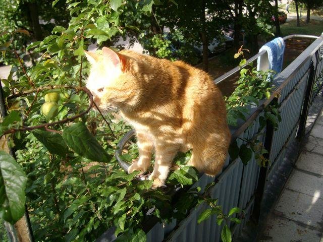 И аз изтръпвам от "подвизите" на Мацо, но поне няма често достъп до балкона. Освен, че се разхожда по невероятно тънкия и тръбовиден парапет/точно като тръбата, на която е стъпил Мич отпред, но без да има къде другаде да се подпре/, често скача и от балкона до прозорчето на тоалетната, което е поне на 1 - 1,5 метра от балкона и е вдлъбнато в стената. Височината се приравнява на 6-7 етаж на съвременните сгради. И отдолу е не само цимент, но и трамвай, и коли  Mr. Green. А пък в отсрещната кооперация си направиха апартамент в таванските помещения с балкон. Техния котарак от балкона тръгва по покрива, след това на покрива на съседната къща/залепени са/, после на следващия покрив и така обикаля цялото каре на квартала  Mr. Green. Специално съм го наблюдавала - понякога разходката му трае 1-2 часа.