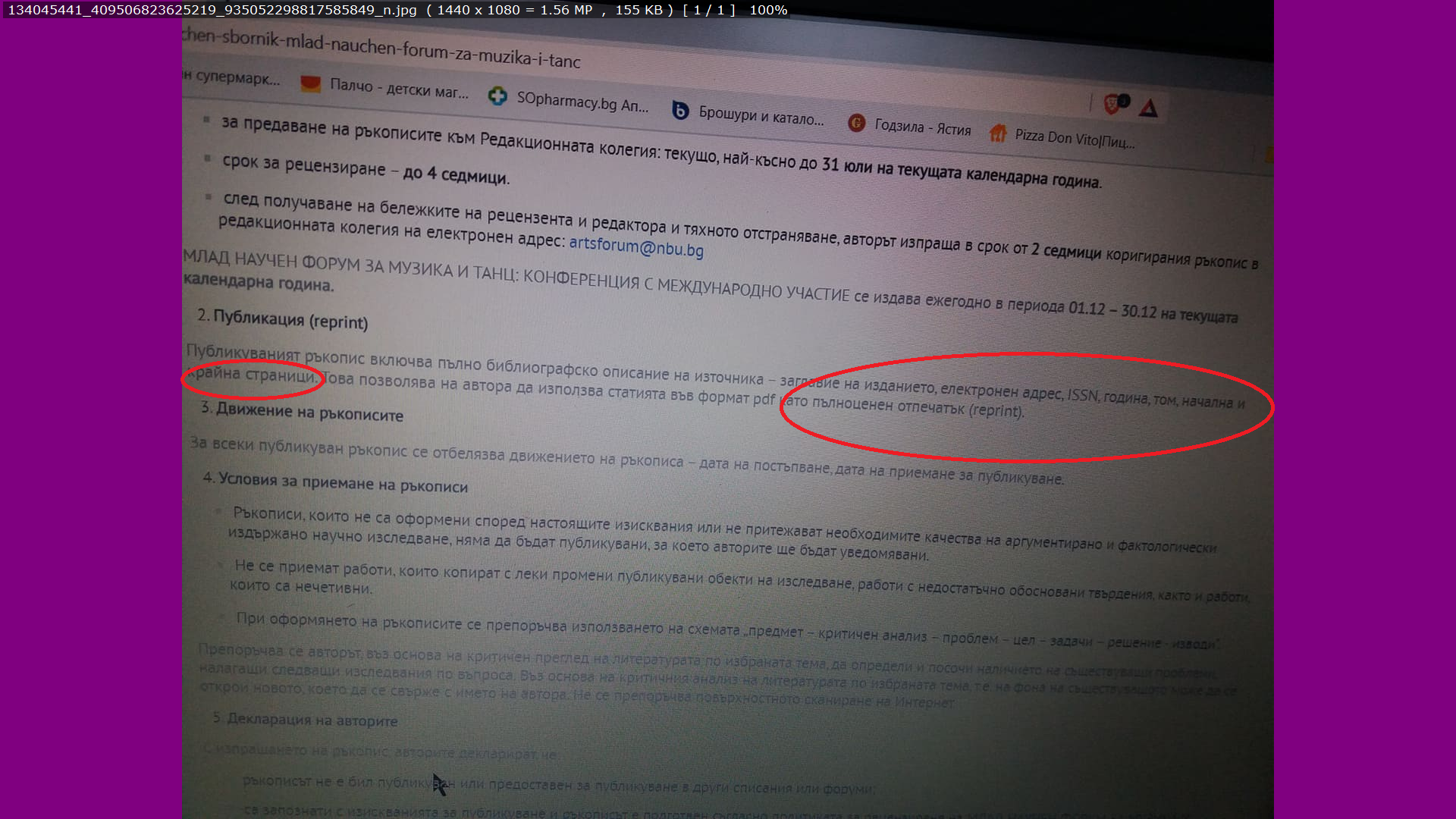 Искам да ви попитам още нещо, тъй като за пръв път подготвям публикация и въпреки че разгледах стандартите за цитиране, не разбирам този, зададен от изданието. Какво се има предвид под електронен адрес, само за онлайн издание ли се отнася? А под начална и крайна страница?