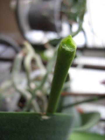 Когато орхидеята произвежда нов цветонос, обикновено се забелязва като израстъци, появяващи се от центъра на растението. Новият цветонос може да е различен по цвят или текстура от листата и корените. Например в случая с бялата орхидея, новоизрастващият израстък представлява нов цветонос. Не е необходимо да променяте грижите си за цветето; просто продължете да го поддържате както обикновено.