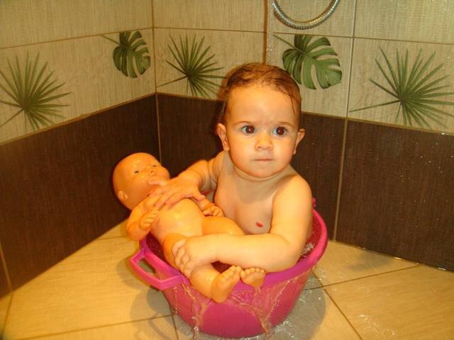 За къпането - през вечер мия косата, къпем се с шампоан и сапунче за телцето, мажа с олио след това.