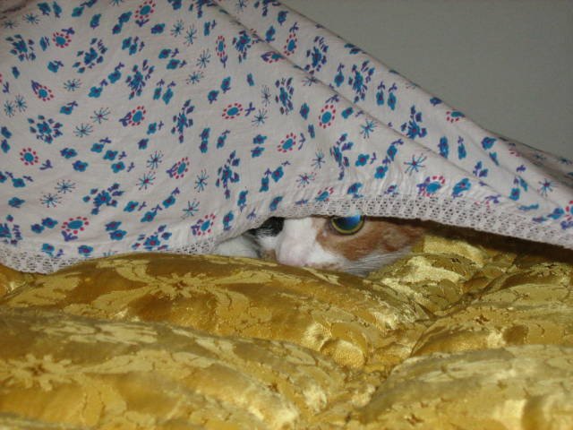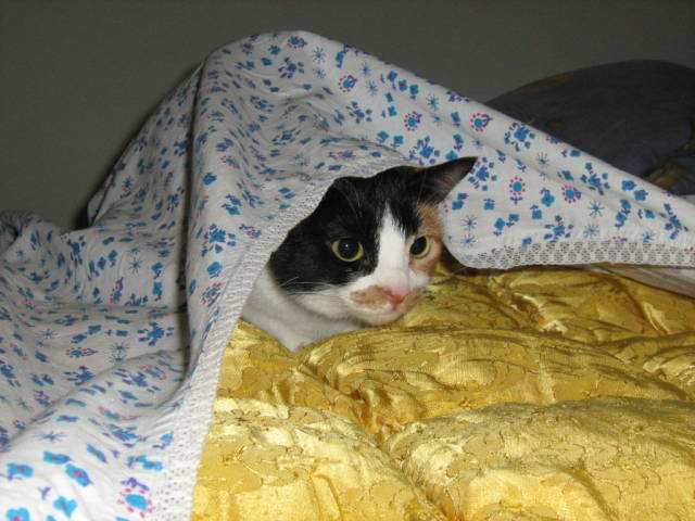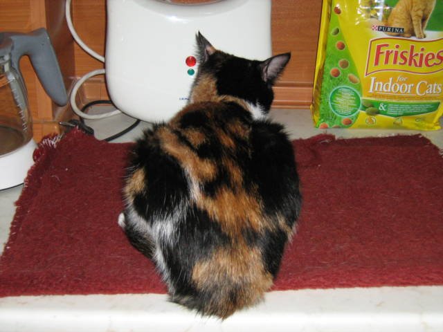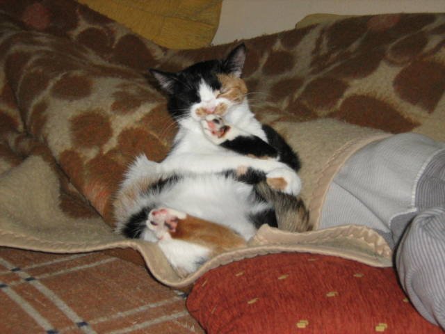 щом ще отсъствате толкова време може би наистина е по-добре да го вземете, макар че както разбрах има кой да го гледа докато ви няма. Кетя е пътувала веднъж до Шумен и обратно, не е плакала, не е повръщала, просто се вцепени в мен и не помръдна почти през целия път, само от време на време въздишаше дълбоко, като човек. Аз я бях гушнала, защото каквато е страхлива сигурно щеше да се пъхне под седалките и там да седи през цялото време. А костенурковото коте е на Близначе, моето е шарено Laughing Ето малко пресни снимки: