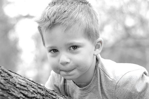 Тук е качен на едно дърво и е легнал на един клон. Аз там немога да го стигна.....добре че излизаме тримата та баща му е по-викос и все още го стига