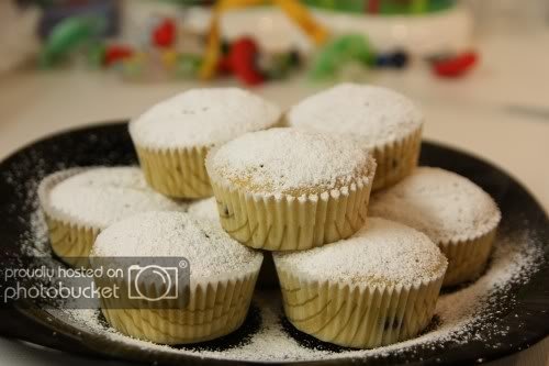 .... но както се вижда прасковите ми не са там където се очакват да бъдат (за справка  оригиналът). Може би прасковите не са били достатъчно големи. Но пък мъфините са много вкусни и малко пудра захар пооправи нещата.