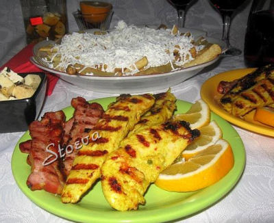 Ние вечеряхме пържени картофи, пилешко филе и бекон на скарата