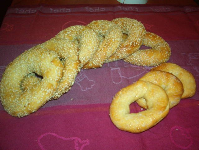 Айдеееее, моЙте са готови. Първа партида. Черпя. Да са ни живи и здрави момченцата. Половината са със захар, че Негово Величество не яде сусам, че му заставали по зъбите.  Mr. Green