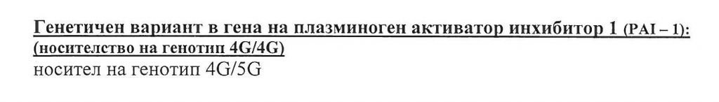 Бебка, да, просто в конкретната лаборатория, в която си си пуснала изследването, така са го наименували просто, търсят хомозиготната мутация, както ти е казала Easy Rider. В повечето лаборатории се изписва PAI 4G/5G.