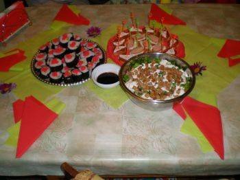 И нали казват: луд умора няма... ето масата от снощи, пак 5 минутна, че голяма лудница беше... (