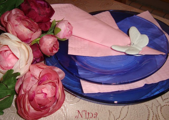 Ягодка, ти ме разби! Това с бялата салфетка и сините чинии е точно моя сервиз