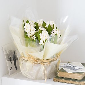 Ето още една идейка - сега е сезонът на зюмбюлите и те могат да са в гамата от цветовете, които ти си избрала, както и да вържат сините чинии с останалата украса. Може даже да бъдат поставени във ваза от синьо стъкло, каквато сигурно имаш(понеже на мен ми подариха няколко нещица от синьо стъкло на сватбата, пък после майка ми при всеки повод все неща от синьо стъкло ми подаряваше, та и вазичка имам