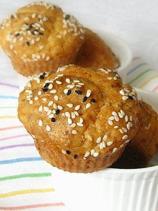 Мъфини с банан и круши                                                 Мъфини с топено сирене и сусам