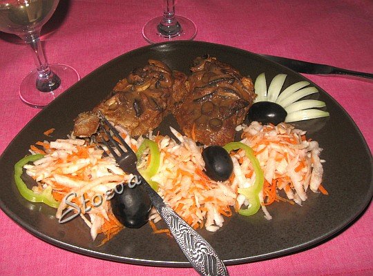 Днес при нас за вечеря пържоли с гъби и мартенска салата - ряпа и моркови