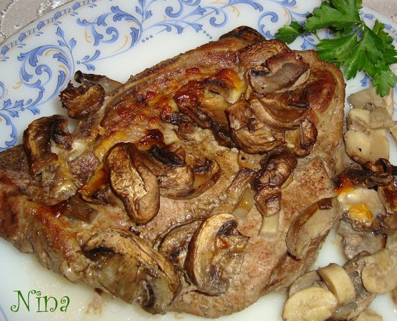Розички от печена чушка и пъдпъдъчи яйца и шарени пържолки с гъби, които станаха безумно крехки