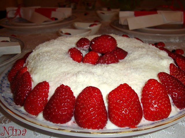 И накрая сладкиш, нещо средно между моята торта и парфето на matze. Този път блата стана разкошен, пак пандишпан правих. Желатина също стегна, но.... не можах да го извадя от формата  Mr. Green малко се разчупи и разля, но пак беше ужасяващо вкусен. И макар, че не беше точно по рецептата на matze, все пак ти благодаря за споделената идея, както и за съветите   bouquet  Hug