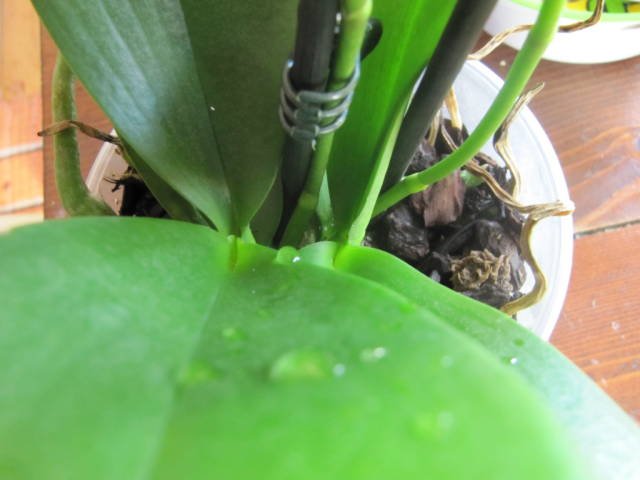 , но пък са тръгнали 2 нови пъпки, има 1-2 корена, които май са за подрязване -леко потъмнели в края си (не мога да фокусирам хубаво в/у тях, че да ви ги покажа). Пулверизирам въздушните корени и листата през ден.