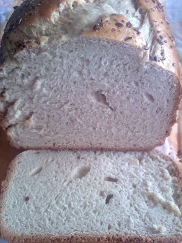 Да се похваля с вчерашният си хляб. Най-накрая, след 3 месеца ползване на машината, направих хляб по мой вкус. Стана чудесен! Правих го с жива мая, на бързата програма ( 2 ч. 10 мин.), като 2 пъти пуснах основното месене, докато ми се получи хубава топка тесто.