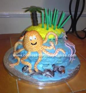 Много исках торта с октопод, но бяха по 90 кинта, а и на сладкарите им отнема 4 дни да я произведат. Затова си направих мини домашна торта, в добавка към поръчковата: