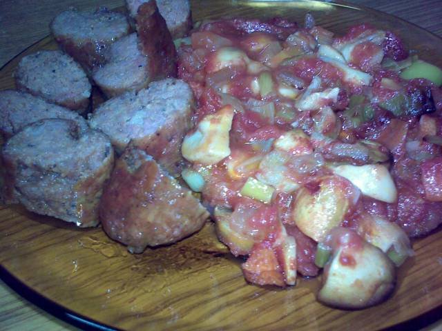 Chili con carne и  телешки наденички.