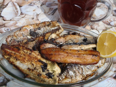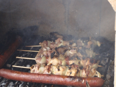 У нас барбекю - пилешки шишчета, сръбска наденица и филе херинга. Херингата явно беше замръзявана и после размразена, много се разпадаше и нямаше никакъв вкус. "Поправих" я с много лимон и подправки. Купихме и две парчета пушена - същата работа, абсолютно безвкусна.