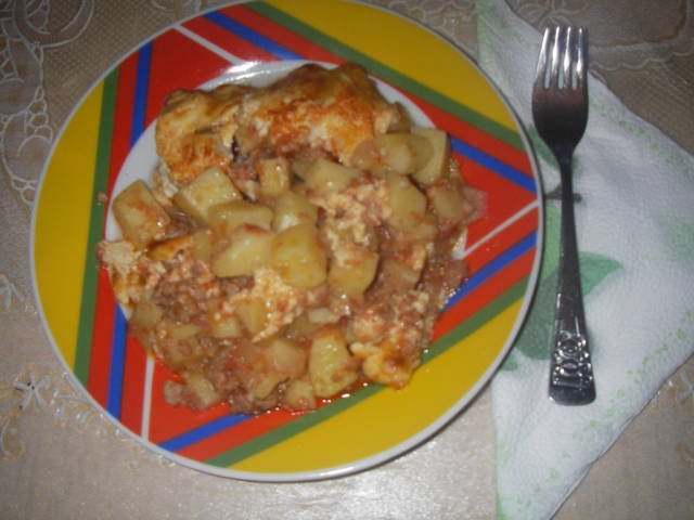 От мен:   пъстра салатка                                               златните картофки на Лео