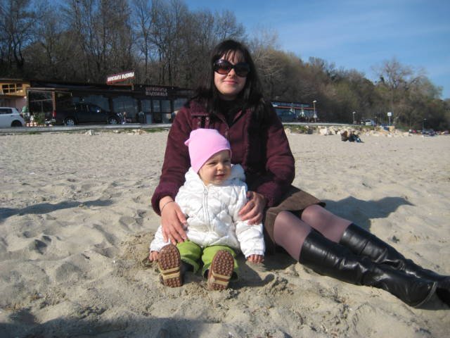 Ето ни и нас как вършеем в Морската цък /постоянно се връща до количката да си натиска играчката, която пееSimple Smile/