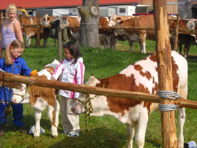На Алекс и Марина много им хареса, галиха малките теленца, гледаха „ревюто„ на крави и бикове, повъргаляха се в сламата, хапнаха вурстчета и сладолед. Какво му трябва повече на човек? Следобяд Алекс ходи по „мъжки„ с баща си да сменят гумите на колата, а после аз ги заведох на площадката за около час. Дано утре пак е топличко и да сме навън, че много добре ни се отразява на всички.