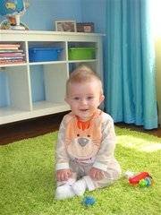 Стоим мн по-стабилно седнали и се изправяме с почти минимална помощ от легнало в седнало положение и дори от седнало се изправяме на крачета. Неудържим е вече-не иска да стои нито седнал, нито легнал, само иска на крачета да го изправям и така да се оглежда от високо. Сигурно мн ще се забавлява в проходилката, но ми се струва още раничко да го сложа в нея, ще поизчакам може би месец.