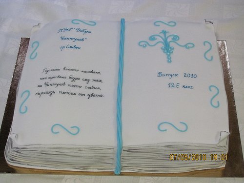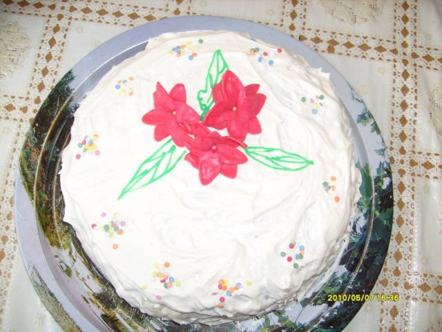 Честита юбилейна тема ,мили момичета !Във форума БГ мама попаднах когато започнах да правя първите си домашни козунаци през април  2008г., а в тортения форум веднага след козуначената треска , но четох доста време преди да набера смелост да задам първите си въпроси - от къде да си купя боички и   ММ . Благодаря Ви за сърдечното посрещане от Виолетката , Ирра , Радина , които бяха толкова добронамерени и ми отговаряха , благодаря и на Рая  ,че ми изпрати комплекта на Уилтън и боички от Хамерика/както казва Ванчето/. Във форума пиша от април 2009г. от 80та тема не много често ,но ви следя ежедневно - в къщи сина и дъщерята ми викаха "зарибената ", но като видяха какви красоти се творят тук започнаха да надничат във форума и да искат да правим торти за подаръци на приятели и приятелки по различни поводи. Благодаря ви ,че Ви има и съм много щастлива ,че ще се запозная с някои от Вас на Цигов чарк .Това е моята първа торта  а това последната