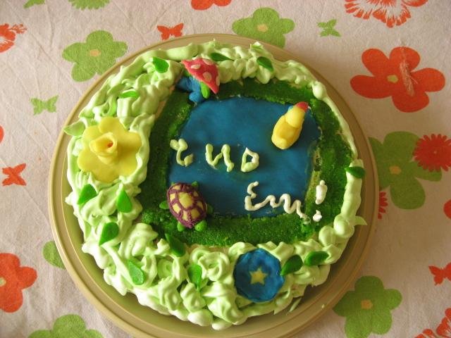 Моята първа торта беше с готови блатове от магазина , а крема не помня какъв.Отгоре е покрита с марципан Варна (това е първия ми и последен опит с това захарно тесто) , оцветен със степчета  Blush Нявах абсолютно нищо в началото , никакви формички , нито форми за печене на блатове ,нито боички ,  абе нищо.А сега не мога да се спра , ще ме изхвърлят от вкъщи вече  Twisted Evil