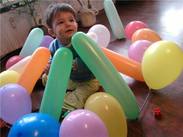 Рися,тази "бодлива" ограда от балони дали ще удържи малкия голям мъж?!  Heart Eyes
