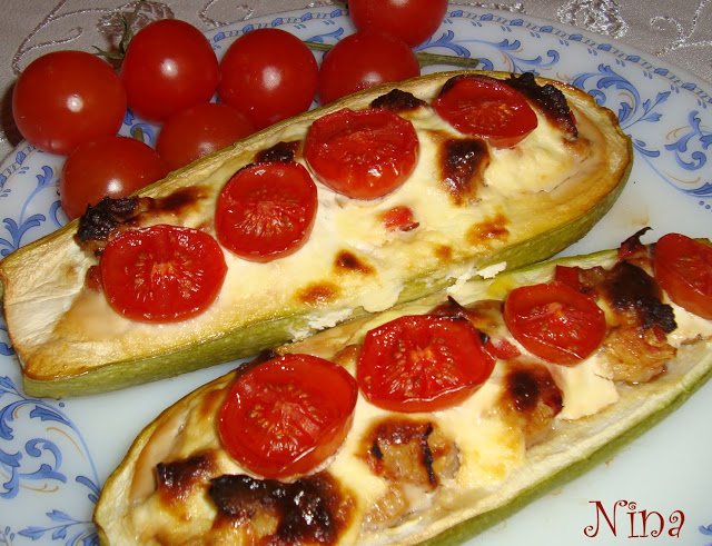 Как да приготвя пълнени тиквички с кайма без ориз, с кръгчета домати и настърган кашкавал?