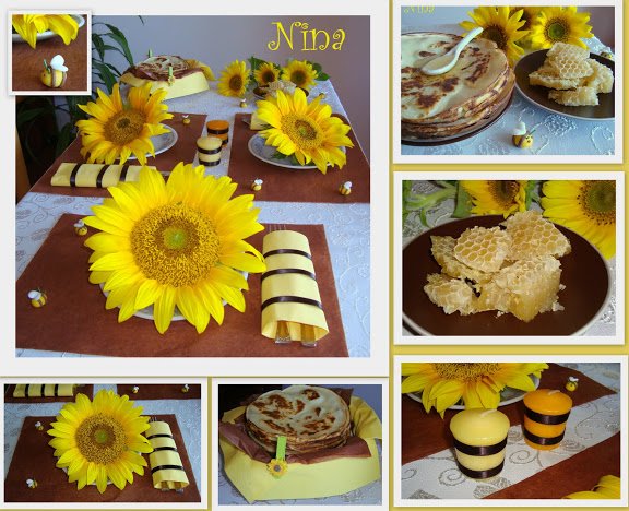 - страшно ми хареса! Пчеличките ти ли ги прави - да си поръчам и аз! Страхотно си се сетила да сложиш кафяви лентички на свещите и на салфетките! Какви са лентичките - изглеждат лъскави и са с перфектния цвят (обикновено имам малко нетърпимост към кафявото - но ти си го използвала идеално)!