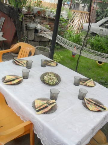 Аз съм ви приготвила масата от 1 юни да ви покажа, бяхме на градинско парти и имах то4но 40 мин. да се приготвя.Самата маса е доста скромна.....