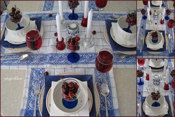Моята неделна маса е черешова. Използвах кухненските кърпи вместо подложки или покривчица: