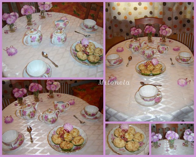 (това мъфините на Таннита с ябълки и хрупкав топинг ли са?) Хареса ми много сервиза! Ех да имаше кой да ми спретне и на мен една такава нежна маса за закуска!