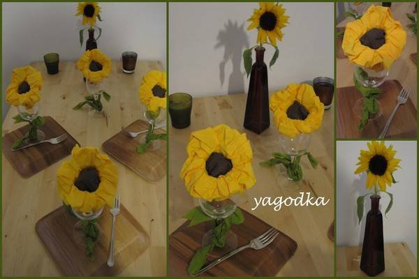 Салфетките-слънчогледи са супер- страхотна идея, перфектно изпълнение, че чак и дръжки от салфетки си им направила! Страшна си, както винаги съм казвала, неизчерпаеми идеи и винаги перфектно изпълнение!