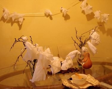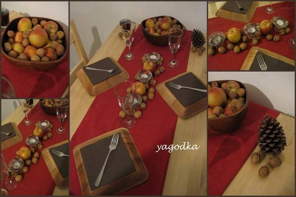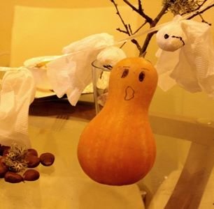 , но все пак не съм стояла и със скръстени ръце. С голямо закъснение да ви споделя една "дуфчена маса" за Вси светии. Снимките са на възстановката във ваша чест, защото на самия ден не успях да снимам преди изгладнялите пакостници да разбутат и изядат всичко по масата. На средващата сутрин аранжировката имаше наитина зловещ вид, защото от кестените в средата се бяха разпълзяли разни червеи по цялата маса... обаче избягяха преди да успея да снимам (