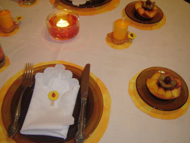 И може би тук най- после се вижда, че салфетките, за които все не ти отговарям какви са  Embarassed, са от плат (бяха комплект с една покривка), а по края са изрязани на фестон.