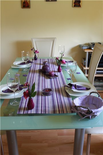 Деси, много е хубава масата ти! Лилавият цвят е много нежен и бонбонен.