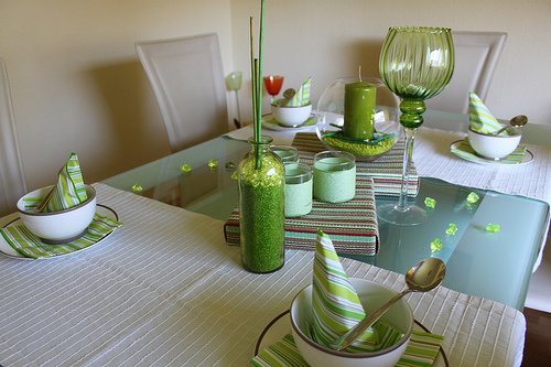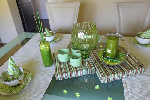 Обожавам такива стъклени съдове в различни форми и цветове - аз самата имам доста , но моите са в жълто.Винаги много ми е харесвало съчетанието на асиметрични детайли в еднакъв стил , само не мога да преодолея моята мания всичко да е абсолютно симетрично- колкото пъти съм тръгвала с различна идея- накрая пак си стигам до еднакво , банално , симетрично подредена маса и не само маса